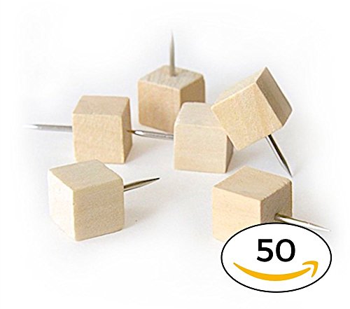 Wood Push Pins ● Cube Style ● Modern Wooden Thumb Tacks (50)