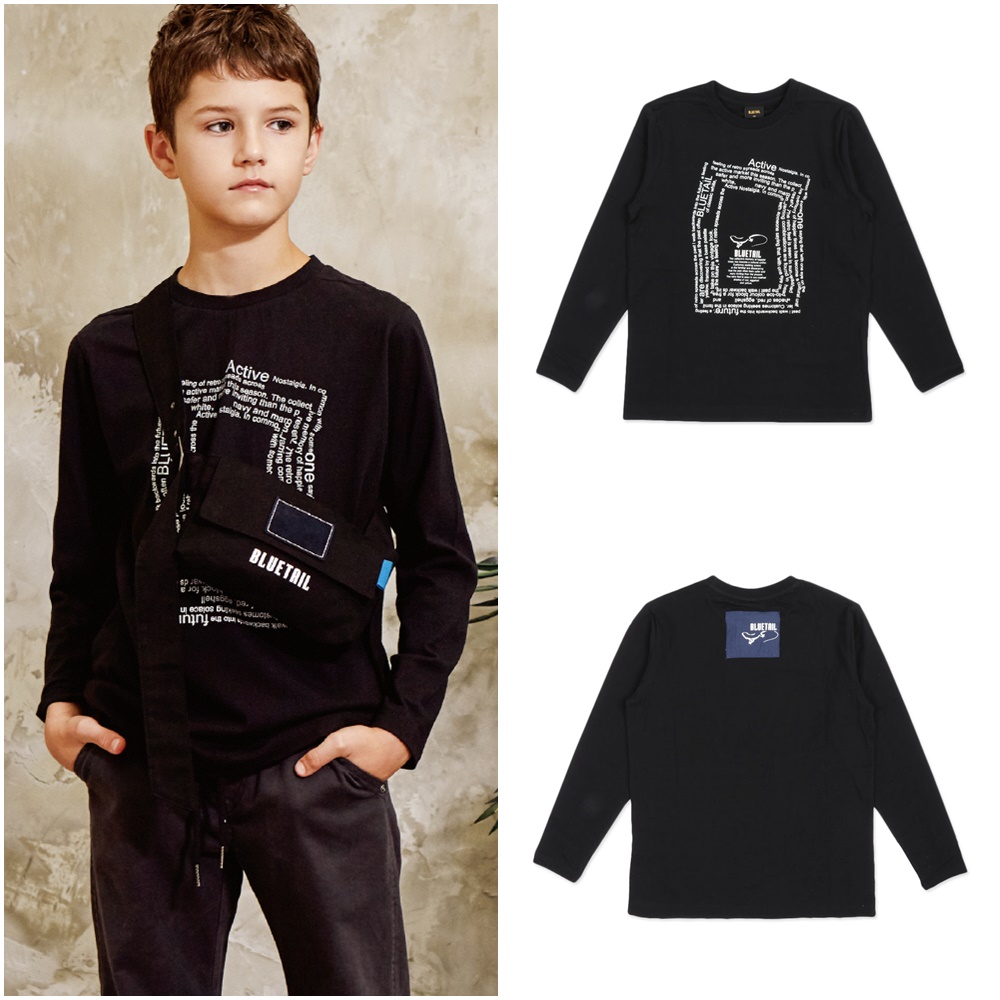 비틀어진 사각 밸런스 프린트로 힙한 느낌을 연출하는 긴팔 티셔츠입니다.