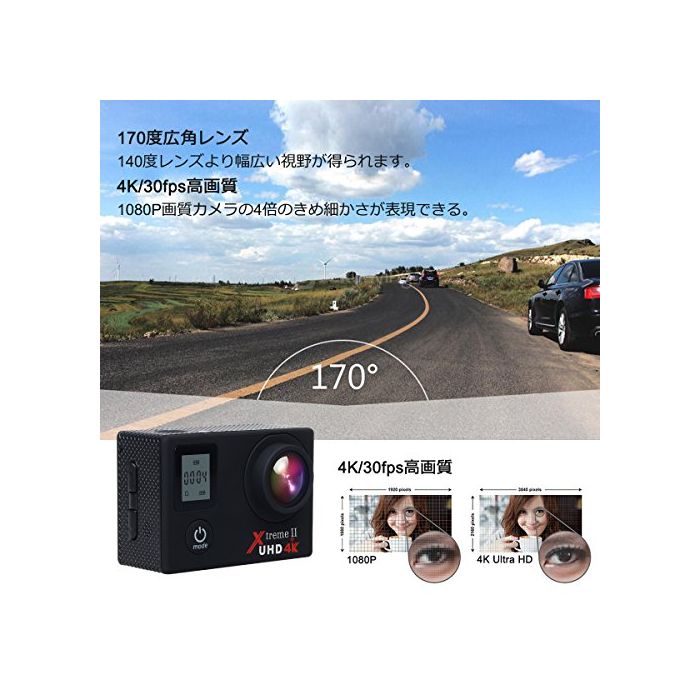 【소니 센서와 170도초 광각 렌즈 】소니 센서를 탑재하고, Campark Xtreme 2카메라는 신기술UltraHD가 탑재하고, 4K/30fps의 동영상&1600만 오름 화소의 사진을 사포《―》《도》고 있습니다.또한 선명한 영상을 표시하는 고감도 소니 센서를 탑재 하고 있습니다. 고화질인 영상으로 야간에서도 높은 시인성을 확보합니다.170도 광각 렌즈가 탑재하고, 보다 폭넓은 시야가 얻을 수 있습니다.
