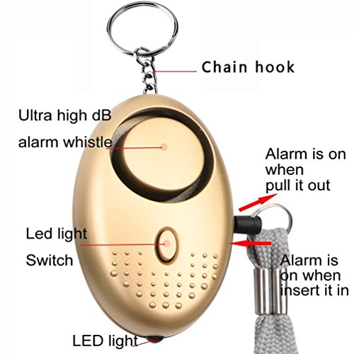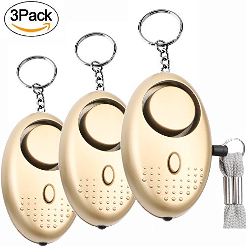 WESUN Personal Alarm Keychain, 130dB Personal Safety Alarms for Women Self Defense, Personal Portable Security Alarms with LED Lights(3Pcs Gold)