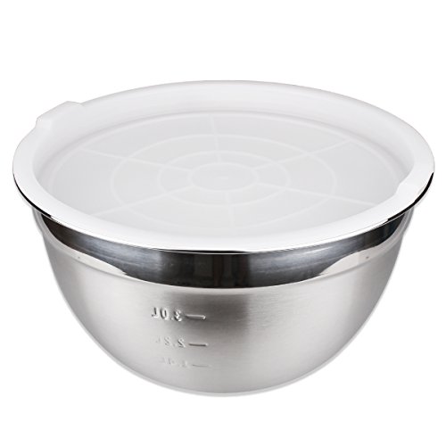 -. Feature : PREMIUM QUALITY STAINLESS STEEL: Perk up your kitchen with elegant FineDine lightweight commercial grade stainless steel mixing bowls that doubles as serving bowls. These strong and sturdy metal bowls won't stain, absorb odors or rust, giving you years of durability. / TAKE IT EASY: The easy grip rounded lip makes handling easier, this generous wide rim allows contents to flow evenly when pouring. Cooking bowls with a sure grip, means your mixing, baking, beating eggs and sauteing is easier and less time consuming. The stay put flat base is stabilizing, ensuring your ingredients stick around for the accolades. / SPACE SAVING DESIGN: The stackable design is ideal for space saving, and a simple solution that de-clutters your kitchen. The attractive polished mirror finish of these large mixing bowls on display will perfectly compliment your stainless steel appliances and unify your kitchen. / REFRIGERATOR, FREEZER & DISHWASHER SAFE: Meal prep couldn't be easier. No more soaking. Dishwasher safe stainless steel mixing bowl set free from harmless chemical and bacterial. Simply wipe clean refrigerate, freeze and store, you'll love the versatility. / An elegant 5 piece set of stainless steel mixing bowls with plastic lids.