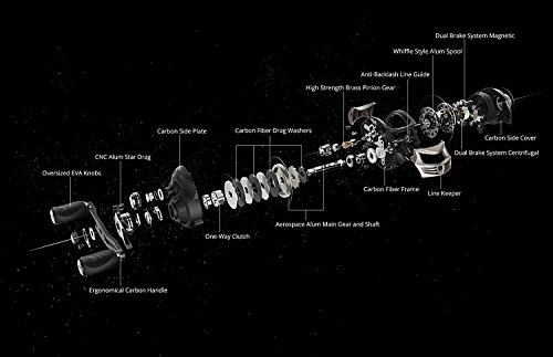 Studio : Eposeidon Publisher : Eposeidon Binding : Misc. Product Description KastKing brings space age high-technology to fishing gear with the Stealth carbon construction baitcasting reel. Stealth fishing reels are made with the same carbon fiber technology, which is stronger and lighter than steel or aluminum, used in aerospace, military aircraft, and extreme performance racecar manufacturing. At only 6 amazing ounces Stealth weighs about 20% less than other similar size reels for extended fishing comfort with less effort and less fatigue. Cast farther with a mere flick of your wrist. This affordable lightweight low profile baitcaster features: 4 disc carbon fiber drag with 16.5 lbs. / 7.5 kg of trophy fish stopping drag, 11 1 high performance anti-corrosion deep-race bearings for ¡°smooth as silk¡± casting and retrieves, optimum line capacity, braid line ready ceramic guide insert, EVA knobs, carbon fiber handle, and an easy to adjust, industry-leading 7 magnet magnetic braking system matched with a fully tuneable 4-pin long standing centrifugal brake for ultimate cast control that greatly reduces backlash during casting and allows you to dial out bird nesting for changing bait weights and conditions. Stealth baitcasters whiffle style CNC aluminum spool spins effortlessly to let baits fly farther, a Stealth baitcast fishing reel uses smooth, precision weight reducing forged aluminum gears in its low noise, high speed 7.0:1 gear ratio drive. An all carbon matrix body and frame Stealth baitcaster is an upgrade from an ordinary conventional graphite or aluminum baitcasting fishing reel at the price that every angler can afford. For a stealthy presentation, finesse fishing, punching or frogging for bass; load a Stealth baitcaster reel with KastKing braided line for a perfect baitcasting combo. KK-Stealth?| Weight 5.98oz/169.5g | Max Drag 16.5LB/7.5KG | Gear Ratio 7.0:1| Line Capacity 0.26mm/180m,0.28/150,0.30/110| Mono Capacity 10LB/200YD, 12/165 14/120 0