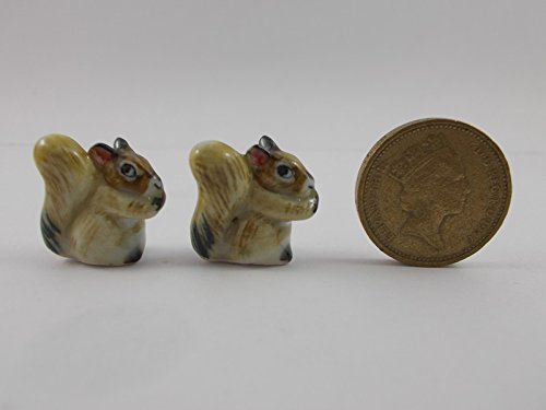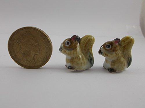 2pc Squirrel Figurines Collection Squirrel Painted Ceramic Miniatures Animals Porcelain Doll House
