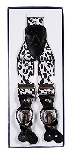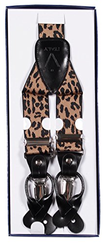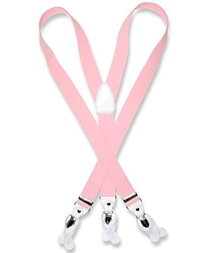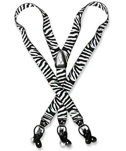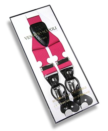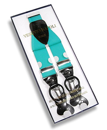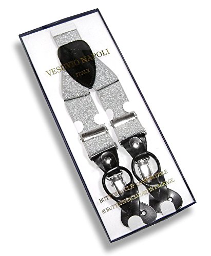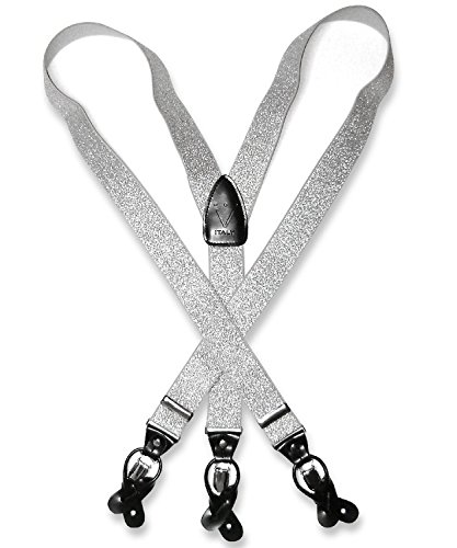 - Feature : Elastic / Men's or Women's skinny suspenders to be worn with a suit for work, special event, or with casual attire such as jeans. / Can be worn with buttons or the metal silver-tone clips braces. / Great Quality Woven elastic with length adjuster and leather pieces at the ends. / The suspender has 3 clips and 2 length adjusters; package includes 6 buttons.
