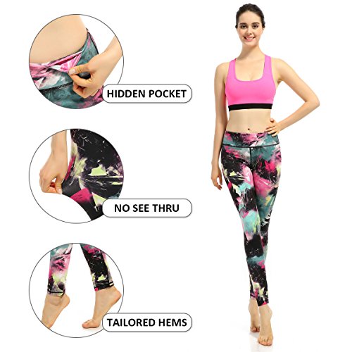 Feature : Form fitting and stereo clipping design, high rise elastic waistband with tummy control, giving you a fabulous and streamlined look / Breathable, super soft, quick dry, moisture-wicking and 4-way stretch fabric, giving you quite commendable comfort and style in your yoga practices. Fabric Type: 83% Nylon/17% Spandex / With unique graphic printing technology, the novelty pattern will not fade or blur after washing / A hidden side waistband pocket provides perfect storage for your keys or cards / Perfect for yoga, sport, exercise, running, any type of workout, or daily use. A range of sizes, satisfy the needs of ladies and girls
