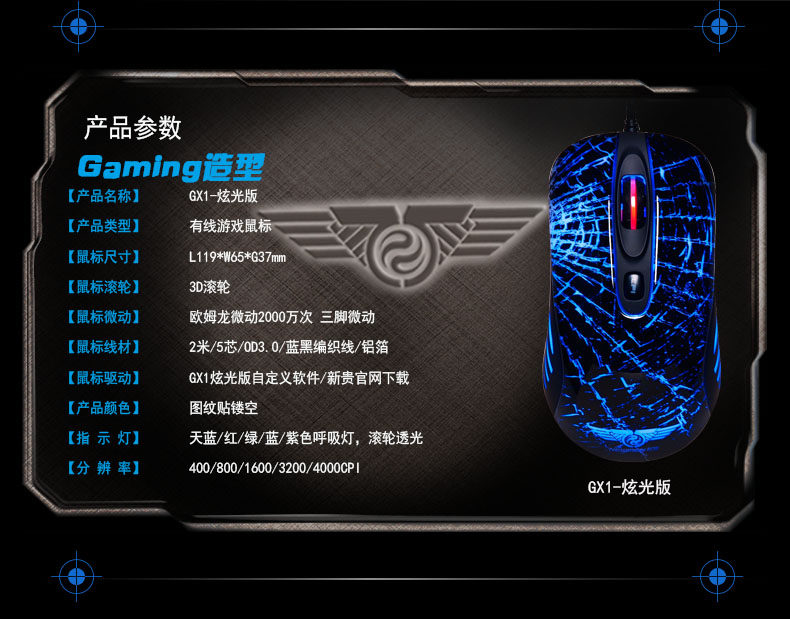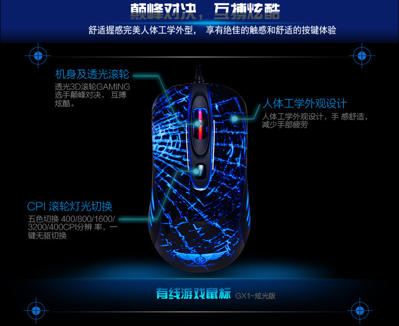 GX1炫光版 专业游戏鼠标 7色可控呼吸 有线鼠标电竞鼠标