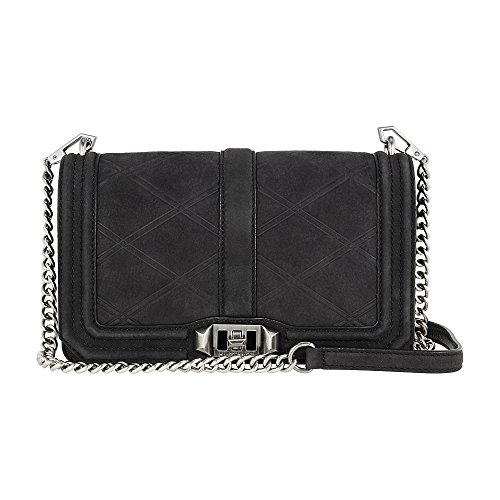 A structured Rebecca Minkoff cross-body bag styled in quilted nubuck. A slim pocket trims the back, and a polished turn lock opens the front. Lined, 4-pocket interior. Optional shoulder strap. Dust bag included.