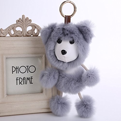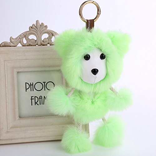 Material: Bottom Plush Ball: High Quality Genuine Fur (Soft Harmless to skin). Stuffed with High-grade Quality PP Cotton. It is Very Soft and it feels like you are hugging a cloud! Keychain Clip: Alloy.