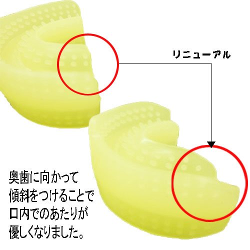 奥歯へ向かって傾斜をつけることでさらに噛みやすくリニューアル!