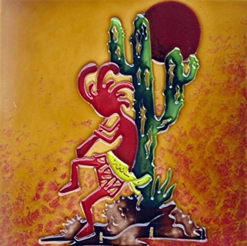 Continental Art Center BD-2329 Art Tile 8"X8" Art Tile-Kokopelli & Saguaro