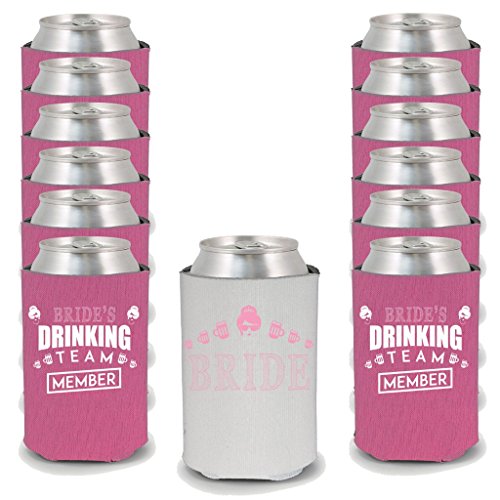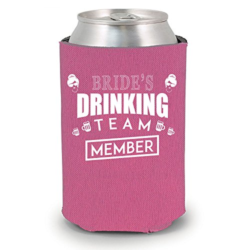Shop4Ever Bride and Bride Drinking Team 'Member' Can Coolie Bridal Wedding Drink Coolers Coolies Neon Pink - 12 Pack