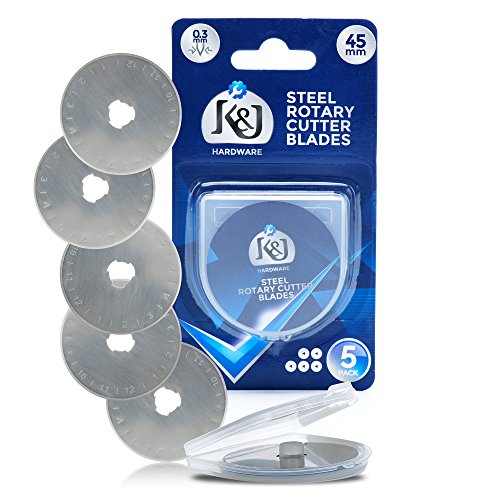 5-Pack of 45mm Rotary Cutter Blades - Fits Olfa and Fiskars Rotary Cutters - Cuts Quilting Fabric, Leather, and More!