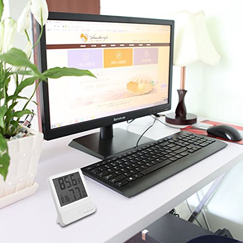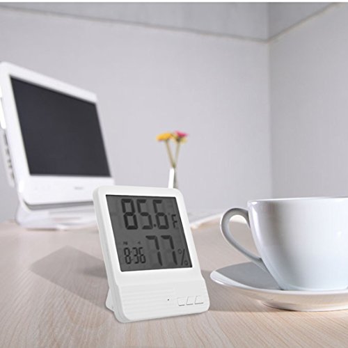 -. Feature : ★サイズ:高さ10.5cm*幅10cm*奥行き5cm / ★本体重量:140g  素材&材質:ABS / ★機能:壁掛けにも対応した、温度、湿度、時計、アラームの4機能を搭載した卓上デジタル温湿度計です。LCD液晶画面に大きな文字で表示されるので見やすいです♪    ★電池:単四型電池1個必要です。製品は電池付属しておりませんので、予めご了承くださいませ。 / ★使用範囲:温度(-50 °C ~ 70 °C)、湿度(10% ~ 99% RH)、表示単位:温度(0.1℃)、湿度(1%RH) / ★温度と湿度をはかって快適な生活空間を提供できる温湿度計。家族の健康管理に、インフルエンザや風邪などの予防対策に、お部屋の乾燥チェックでお肌の潤いを保つのに、他にも、カビ対策や熱中症対策などに役立ちます。