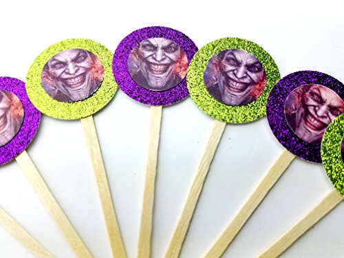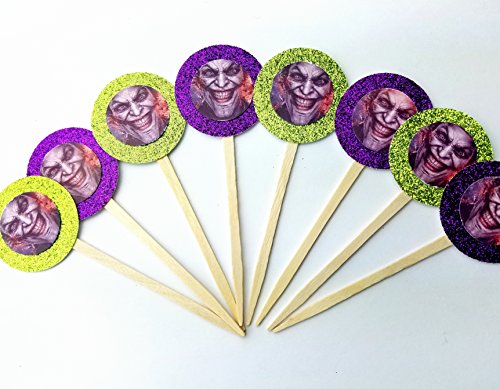 8 NEW Joker Purple Green Cupcake Picks Birthday Party Dessert Table Food Picks Marvel defenders Batman Harley Decor Cake Birthday