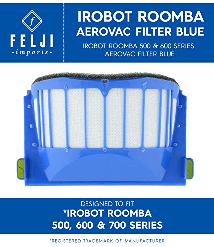 iRobot Roomba 500 & 600 Series AeroVac Filter Blue maintains iRobot® Roomba's cleaning performance while reducing infiltration of dust, pollen and other allergens. Compatible with all Roomba 500 and 600 Series robots with an AeroVac Bin. The filters are easy to see and access, so you can snap them on and off with minimal effort. Works with both 600 and 500 Roomba series. Imported.Feature