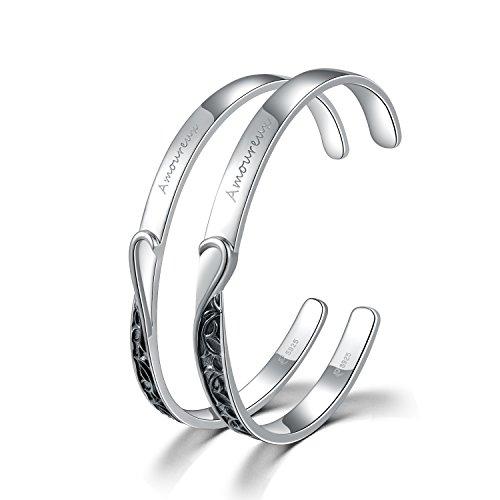 -. Title : MaBelle シルバー 925 純銀 ブラック燻し ハート Amoureux 刻印 ペア バングル ブレスレット セット カップル レディース メンズ 恋人 バレンタインデー プレゼント