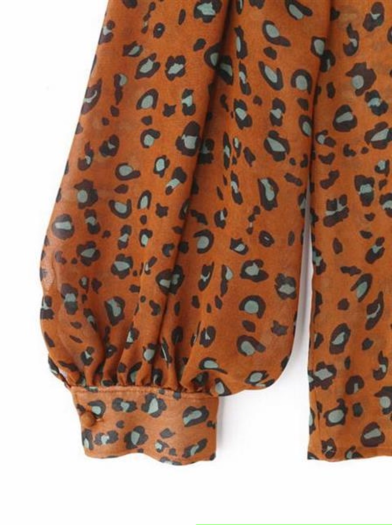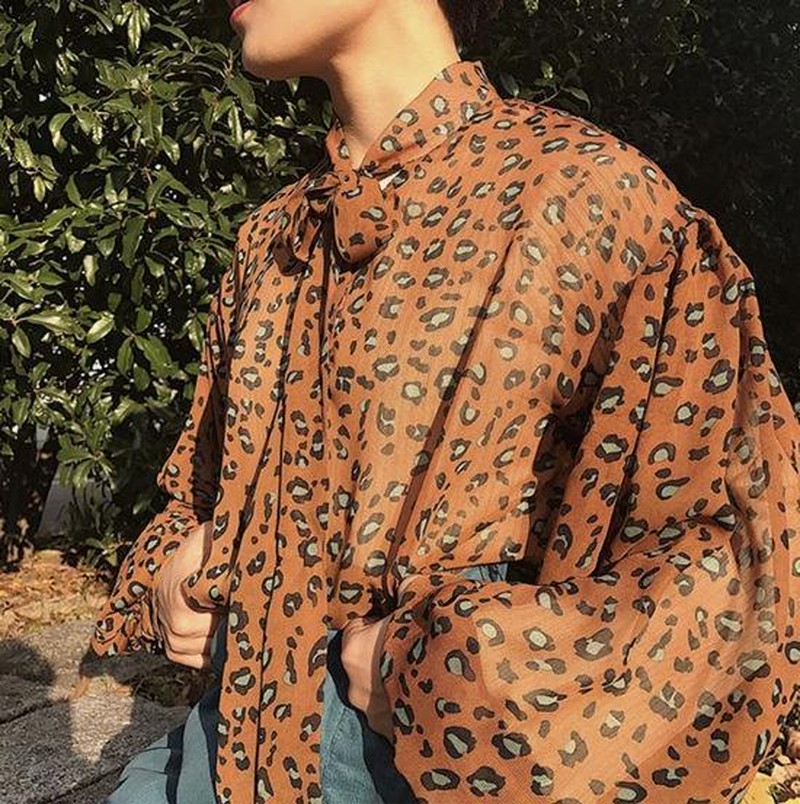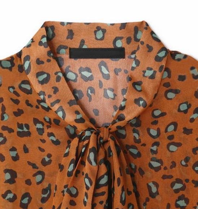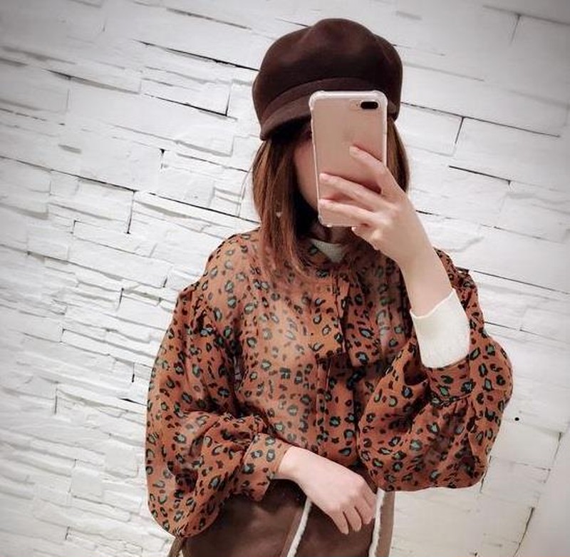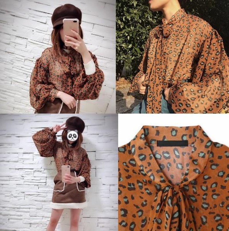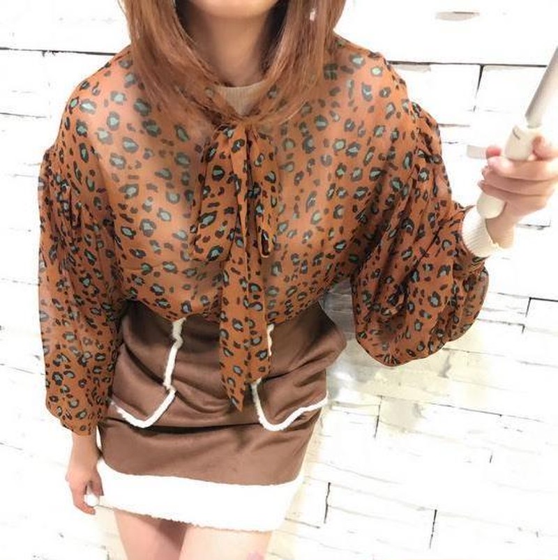 ♢ポイント♢ レオパード柄の長袖シフォンブラウスです。 胸元のリボンにバルーン袖がアクセント♪