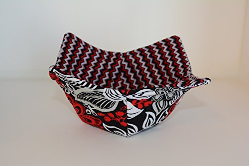 Product Description 1 small bowl cozy (Approx 6.5" sq) This reversible microwave bowl cozy is the perfect solution to handling super-hot dishes. Cooking and reheating food in a dish cozy makes life so much easier! Place your microwaveable dish inside the bowl cozy and put the whole thing in the microwave to heat. To take the bowl out, you simply grab the corners of the cozy. We found that our kids can now get their dishes out of the microwave safely. Cozy will also protect your fingers from the cold when holding a bowl of ice cream and are great for protecting your table.Please be advised: Bowl cozies must only be used in microwaves with a rotating base. To avoid scorching or burning, please make sure cozy freely rotates in your microwave. Never leave microwave unattended. Make sure cozy is clean with no pieces of food attached. Do not microwave cozy for more than three minutes. *** We are two stay at home moms who are working together and putting our creative energy to good use! Our names are Kristen and Jennifer, and we have been creating together for 8 years and are ready to take our creativity to the next level. We are Hot 4 Handmade and hope you will be too.*** 0
