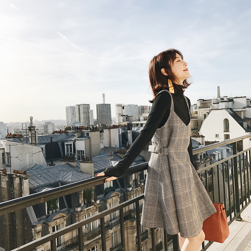 格纹面料做了这款吊带连衣裙,有种特别的气质,炒鸡可爱,