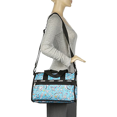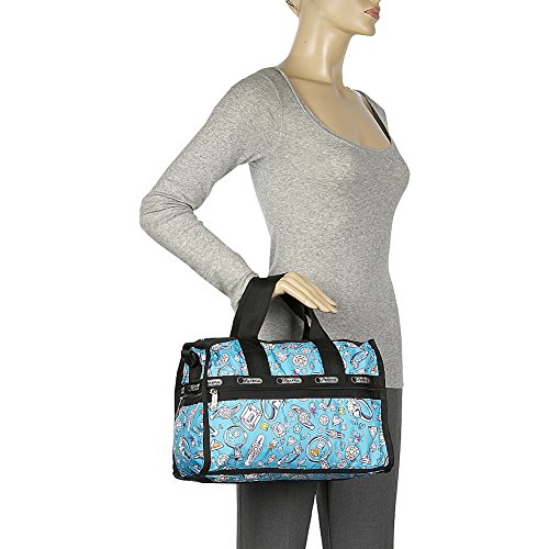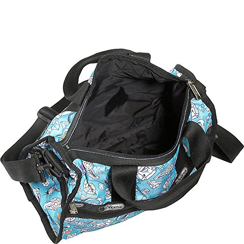 Amazon.com Product Description This small weekender from LeSportsac will conveniently hold all of your things while keeping your style in play. Its surprisingly roomy interior and loads of zippered compartments offer a great solution for weekend getaways, and would make the perfect carry-on.