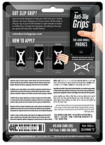 -. Binding : Wireless Phone Accessory -. Brand : Joslin Orthopedic Gear -. Color : Clear -. EAN : 0656480015555 -. Feature : Provides a secur finger grip on the back of your mobile device / Keeps phone from slipping on most surfaces / Slightly elevates phone above wet and sticky surfaces / Sticks directly to device or to most hard covers / Adds less than one ounce to your phone -. Label : Joslin Orthopedic Gear -. Manufacturer : Joslin Orthopedic Gear -. Model : 1555J -. MPN : 1555J -. PackageQuantity : 1 -. PartNumber : 1555J -. ProductGroup : Wireless -. ProductTypeName : WIRELESS_ACCESSORY -. Publisher : Joslin Orthopedic Gear -. Studio : Joslin Orthopedic Gear -. Title : Joslin Grips for Mobile Devices - CELLPHONE X for Large Phones -. UPC : 656480015555