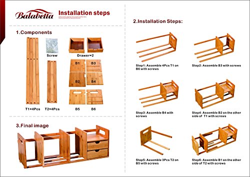 Natural Bamboo Adjustable Desk Organizer with Two Drawers for Office/Home, Expandable Desk Tidy Bamboo Bookshelf