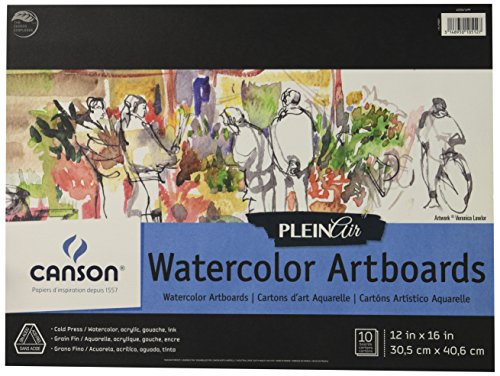 Canson Plein Air Watercolor Art Board Pad for Watercolor, Ink, Gouache and Acrylic, 12 x 16 Inch, Set of 10 Boards