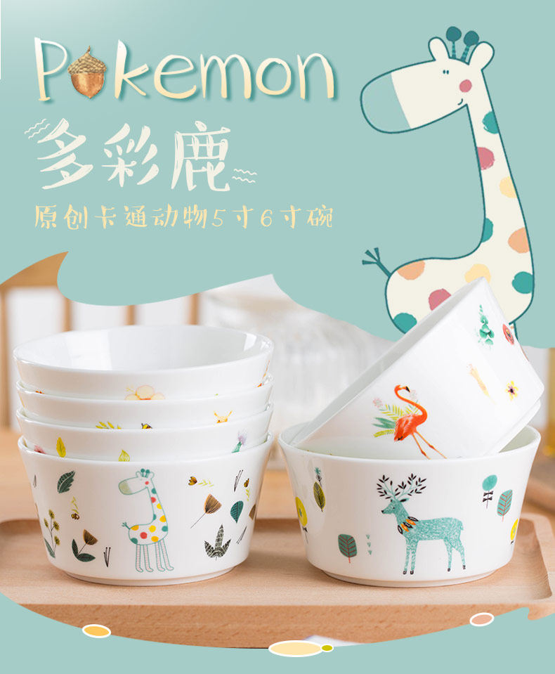 创意瓷碗饭碗餐具家用5寸6寸大汤碗面碗可爱卡通大号吃饭碗泡面碗