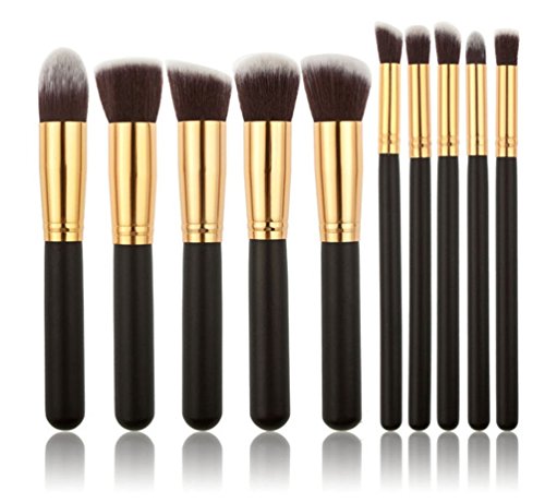 -. Feature : Fashion Base Professional 10PCS Black and Gold Makeup Brushes Set Eyeshadow Brush