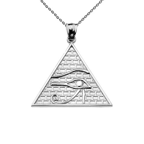-. Title : Sterling Silver Detailed Eye of Horus Pyramid Pendant Necklace