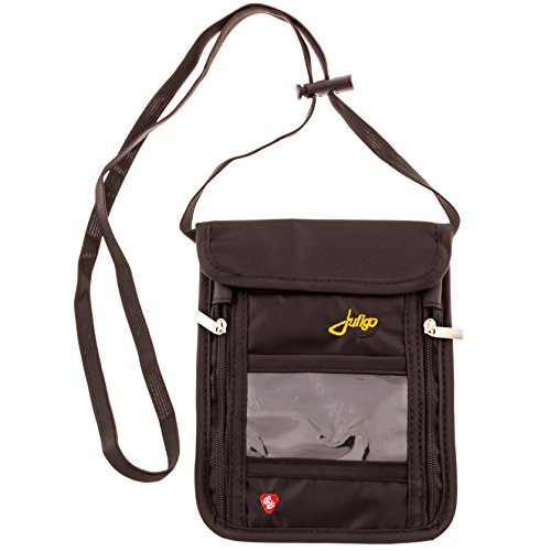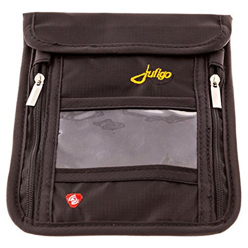 - Feature : ✔ TOP NECK WALLET - Whether you're a Business Traveler, Jet-Setter, Backpacker or Concert-Goer, this wallet provides function and fashion. Ultra lightweight, comfortable and made to last. Top quality Rip-stop Nylon with Double Stitched reinforced Seams. Back panel constructed with Breathable Mesh to alleviate moisture and heat. Neck Strap is adjustable and stretches to move with you and not bind. 5.5" x 7.5" - Not bulky, but WILL store all your stuff! / ✔ ULTIMATE PICK POCKET PREVENTION - Wear your neck stash under clothing, hidden from potential thieves. Keep your valuables protected and with you when you are traveling, enjoying outdoor recreation and sports, like camping, hiking and biking, or enjoying concerts or crowded events. / ✔ RFID BLOCKING SECURES YOUR INFORMATION - Front Pocket is lined with Radio Frequency Shielding Material to prevent Electronic and Identity Theft of all contents. Your passport and credit card information will remain confidential and safe. / ✔ 4 STORAGE POCKETS - Clear compartment securely stores your ID where it can be easily seen and accessed. Front compartment has two zippers for easy access. Additional 2 compartments are protected by Heavy Duty Velcro Flap enclosure, enabling you to protect your cash, passports, boarding passes, credit cards, keys and smartphones. / ✔ 100% LIFETIME MONEY-BACK GUARANTEE - Juligo stands behind it's products. If you're not satisfied with your product, you may return it at anytime for a full refund of the purchase price - No questions asked.