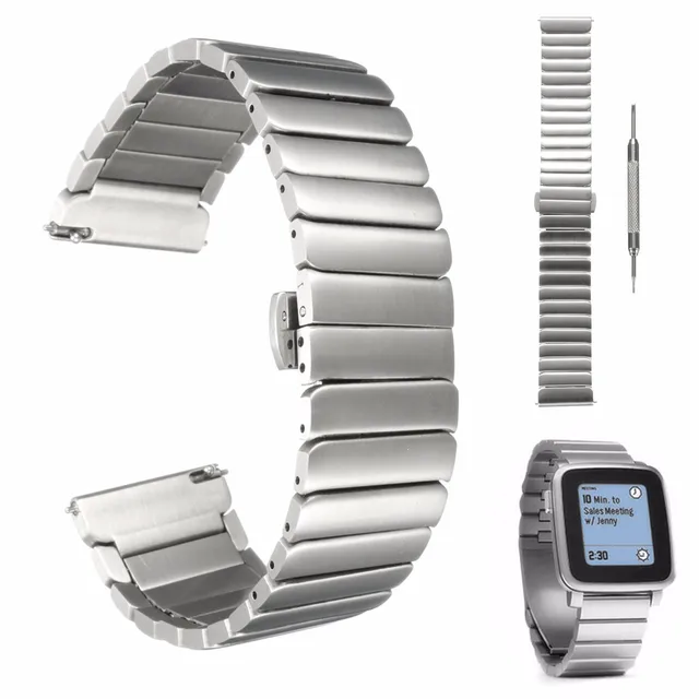 | [해외]22 미리메터 166 미리메터 브랜드 새로운 조약돌 시간 스틸 스트랩 스테인레스 스틸 손목 시계 밴드 손목 손목 팔찌 나비 걸쇠 |