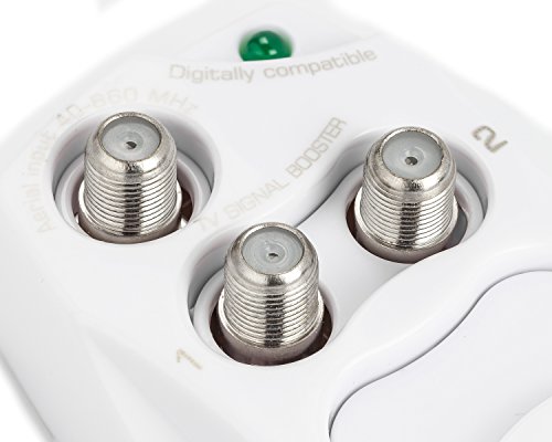 - Feature : 1 Input Port and 2 Output Ports. Hookup 2 TV's with only 1 antenna! / Splits signal and amplifies it at the same time. / Will reduce video pixelation and graininess due to low signal levels. / Also improves cable modem performance in many cases. / Compatible with all cable TV systems as well.