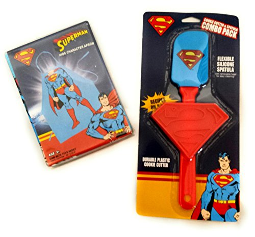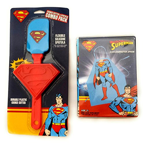 DC Comics Superman Kids Baking Bundle with Apron, Spatula & Cookie Cutter (3 Items)