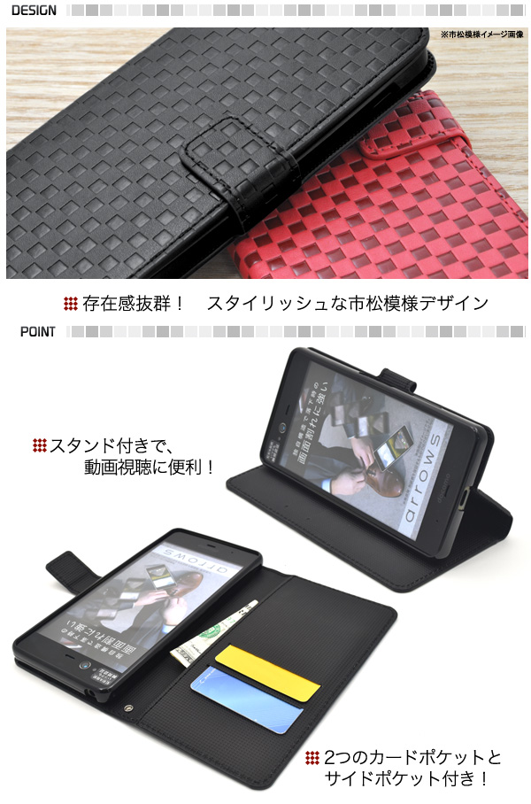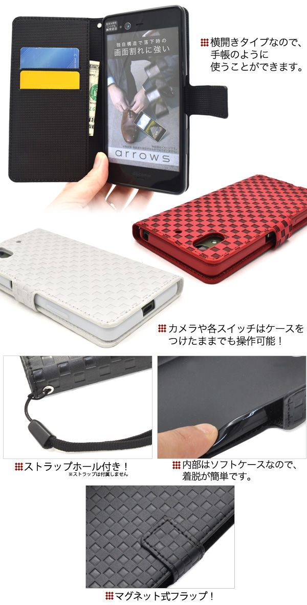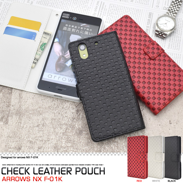 arrows NX F-01K用 市松模様デザイン手帳型ケース
