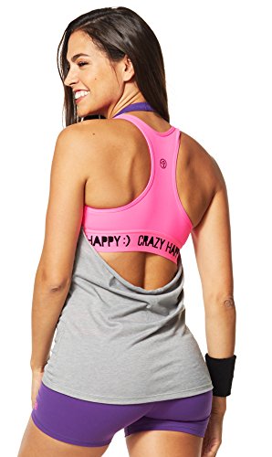 Zumba Womens Crazy Happy Halter Top, Thundering Grey Heather, X-Large
