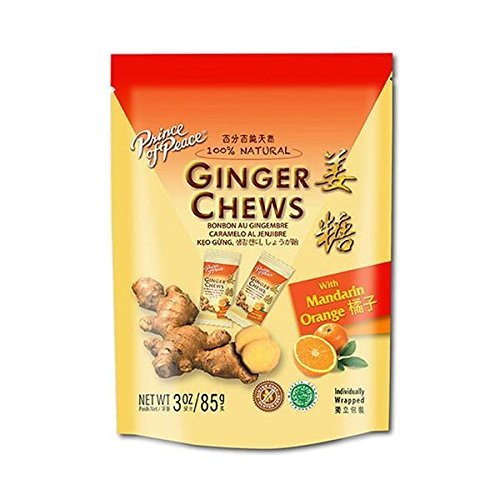 -. Binding : Health and Beauty -. Brand : P.R.Ince Of Peace -. Feature : Sweet and spicy flavor with an added fruity flair / Made with natural ginger and oranges / Helps relieve stomach discomfort / Individually wrapped ginger chews / 1 bag contains 21 servings of ginger chews -. Label : P.R.Ince of Peace -. Manufacturer : P.R.Ince of Peace -. ProductGroup : Health and Beauty -. ProductTypeName : HEALTH_PERSONAL_CARE -. Publisher : P.R.Ince of Peace -. Studio : P.R.Ince of Peace -. Title : P.R.Ince of Peace Ginger Chews with Mandarin Orange P.R.Ince Of Peace, 4.4 Oz Bag
