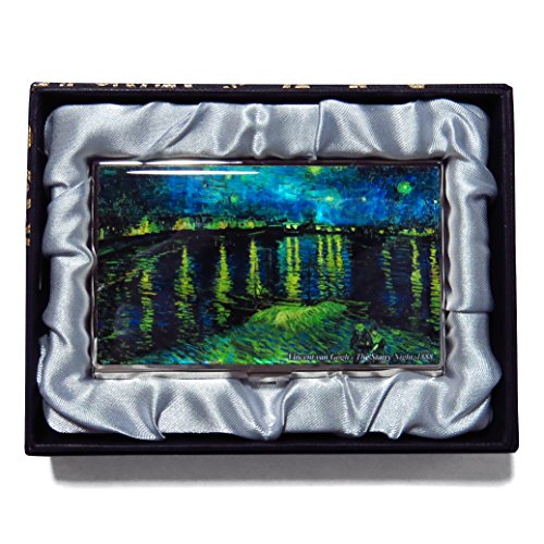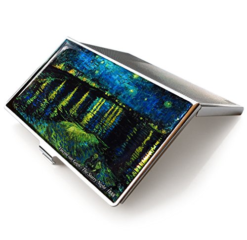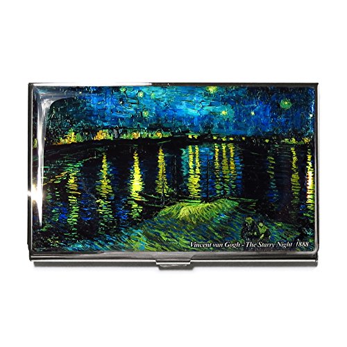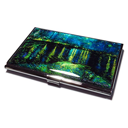 Vincent Van Gogh Starry Night over the Rhone Business Credit Card Case Id Holder Metal Travel Wallet Mother of Pearl