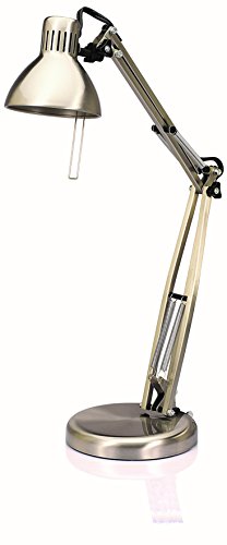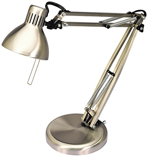 -. Feature : Classic double swing-arm design / Fully adjustable arm and shade / Metal construction with unique satin chrome finish / 23-1/2 inches tall / Includes 120V 35W halogen bulb