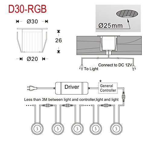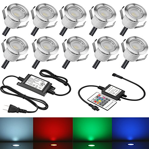 Low Voltage LED Deck Lights Kit Φ1.18" Waterproof Recessed Deck Lamp Outdoor Yard Garden Pathway Patio Step Stairs Landscape Decor LED In-ground Lighting RGB, Pack of 10