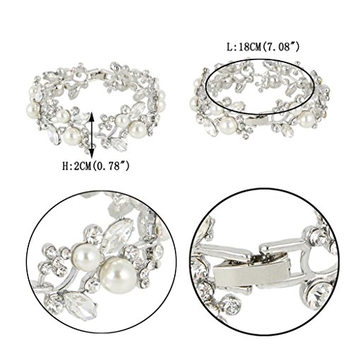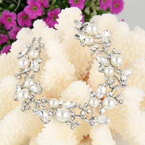 -. Binding : Jewelry -. Brand : EVER FAITH -. Department : womens -. Feature : [!]EVER FAITH is a US registered trademark and Ever Faith Jewelry(former name: Kiss Bling) is its only owner. We will pursue legal action against trademark infringement in case of UNAUTHORIZED sale or resale. / Main Color: Clear, Ivory Color / Length: 18CM(7"). Width: 2CM(0.8") / Wrapping: Come with some spare crystals, and a gift box or favor bag (depend on product size) -. Label : EVER FAITH -. Manufacturer : EVER FAITH -. ProductGroup : Jewelry -. ProductTypeName : FASHIONNECKLACEBRACELETANKLET -. Publisher : EVER FAITH -. Studio : EVER FAITH -. Title : EVER FAITH Austrian Crystal White Simulated Pearl Bridal Floral Leaf Tennis Bracelet Clear
