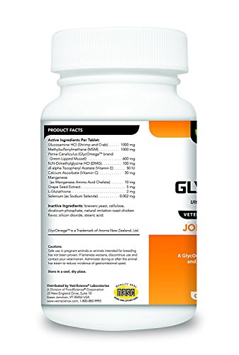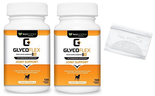 -. Feature : The GlycoFlex Joint support stages system has been trusted and recommended by veterinarians for over 30 years. GlycoFlex is Clinically Proven to increase hind leg strength in 4 weeks. / GlycoFlex Tablets provide a great value for multi pet households-each tablet includes the same joint health nutrient levels as two GlycoFlex soft chews. GlycoFlex tablets are easy to digest and absorb: great for pets that may find chews too dense or that have easily upset stomachs. Our tablets are naturally flavored with chicken for better compliance. / VetriScience Laboratories GlycoFlex 3 Chewable Tablets are designed for serious joint support. / Clinically Proven GlycoFlex 3 Hip and Joint Supplement for Dogs is the third stage of our comprehensive joint support program.This formula Includes glucosamine, DMG, Perna canaliculus and MSM, proven ingredients that help build cartilage, cushion joints and manage inflammation. / GlycoFlex 3 provides maximum support to pets showing more serious signs of aging and discomfort as well as limited mobility, or dogs in recovery after orthopedic surgery. It is also a great option for large dogs that grow quickly and may be predisposed to joint health issues and, active and competitive dogs to maintain top form. Travel pouch is reusable and a great way to always have your pets dosage with you at all times.