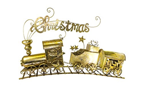 Queens of Christmas WL-TRN-30-GO 3 Car Metal Train Set, 30", Gold