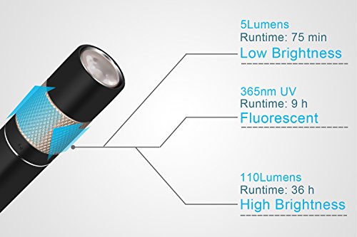 - Dual Led flashlights: keychain flashlight / UV blacklight flashlight with low power 30nw(not need a protective glasses). the UV light 365nm are more safer than 395nm ultraviolet flashlight to detect pet Urine, Minerals, Stains, Scorpion and Money; here also can get 1 pcs free bike soft amount (ASIN: dp/B072LQCBG2, need add in your cart) on purchasing 1 pcs civictor f3