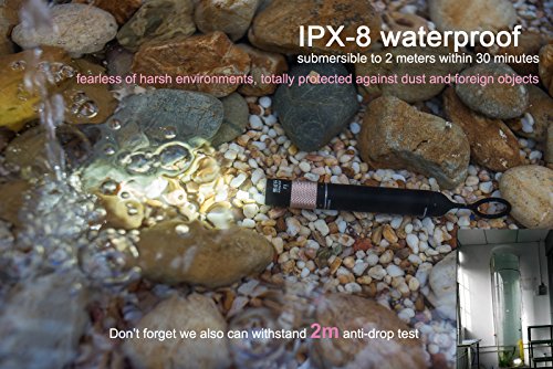 - Hard to be scratched with the top A6061-T6 aircraft-grade aluminum withstand the highest waterproof IPX8 underwater 2M, even if unscrew tail ring, the waterproof flashlight also can be dropped into water