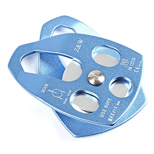 -. Feature : - For ropes up to 15mm diameter, tensile strength is 30KN / - Equipped with two attachment points for use in complex lifting systems / - Aluminum alloy pulley with single wheel, mobile side plates, and high-efficiency ball bearing / - Suitable for rescue, ice climbing, rock climbing, tree climbing, mountaineering, arborist work, fire and slacklining, zip lines, wall hauling, etc.Parameter