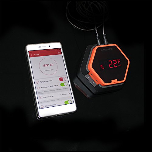 Inkbird Digital Wireless Bluetooth Grill Smoking BBQ Thermometer with Six Probes, 150ft Bluetooth Range, 32~572°F - Orange