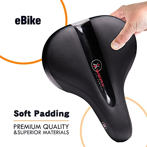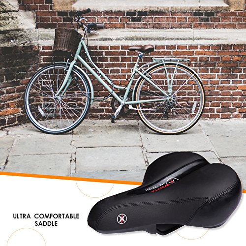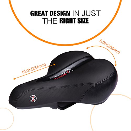 Xwerx saddles offer unmatched comfort and quality! Get a premium bike saddle at almost half of what anyone else is selling them for! This ultra comfortable saddle is especially designed so you will ride longer without worrying about the next day soreness! Size: 10.0in. long x 8.0in. wide (L254xW203mm)