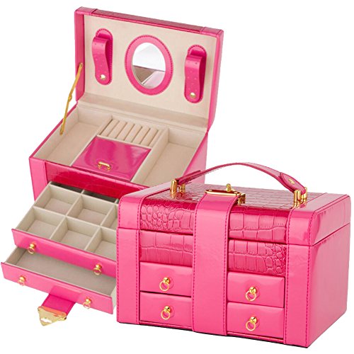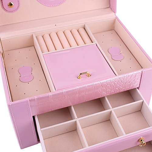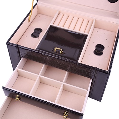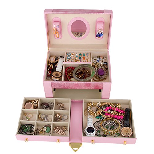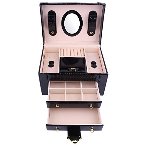 -. Title : GUANYA PU Leather Three Layers With Mirror Tote Jewelry Box Organizer For Necklace Bracelet Ring