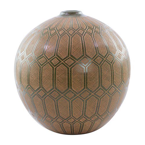 NOVICA Decorative Ceramic Vase, Brown and Green, 'Lights In The Forest'
